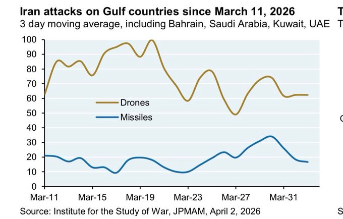 Missile hit rates: Iranian “missile hit rates against Israel have risen from 3% during the first two weeks of the war to 27%.” JPM.
