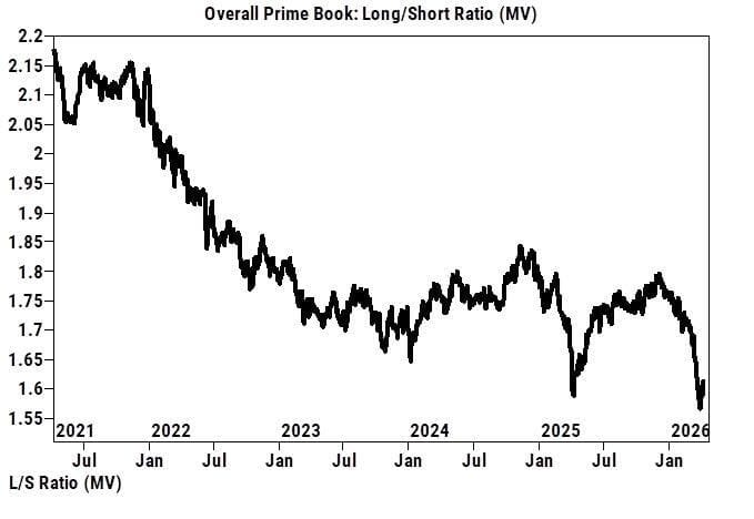 HF positioning: Goldman Prime Book shows hedge funds are more bearish now than at the Liberation Day lows. The potential for a serious unwind higher is real.