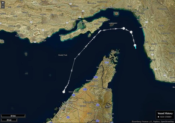 President Trump's Strait of Hormuz blockade is already being tested: Rich Starry, a Chinese-owned tanker sanctioned by Washington for dealing with Iran, is the first vessel to exit the Gulf since the blockade began, according to Reuters, LSEG, MarineTraffic, and Kpler.