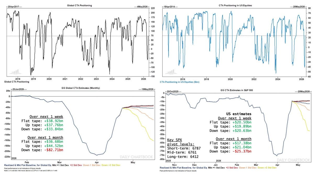 CTA: We estimate that CTAs bought $44bn of US equities last week and $84bn globally. Over the next week, we estimate CTAs will continue to buy US and global equities in every scenario. - GS