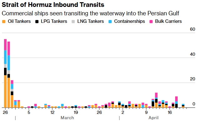 Traffic in Strait of Hormuz: Strait of Hormuz traffic is near halt amid dual blockade.