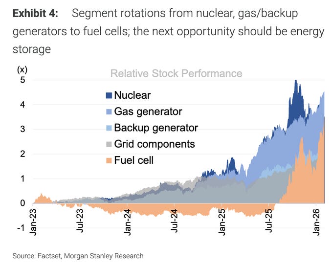 Energy storage: Morgan Stanley sees the next big opportunity in Energy Storage when it comes to AI power plays.