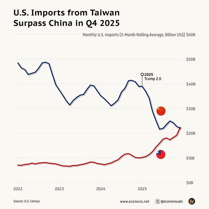 U.S. & China trade: US imports from Taiwan surpassed those from China for the first time in recent history.